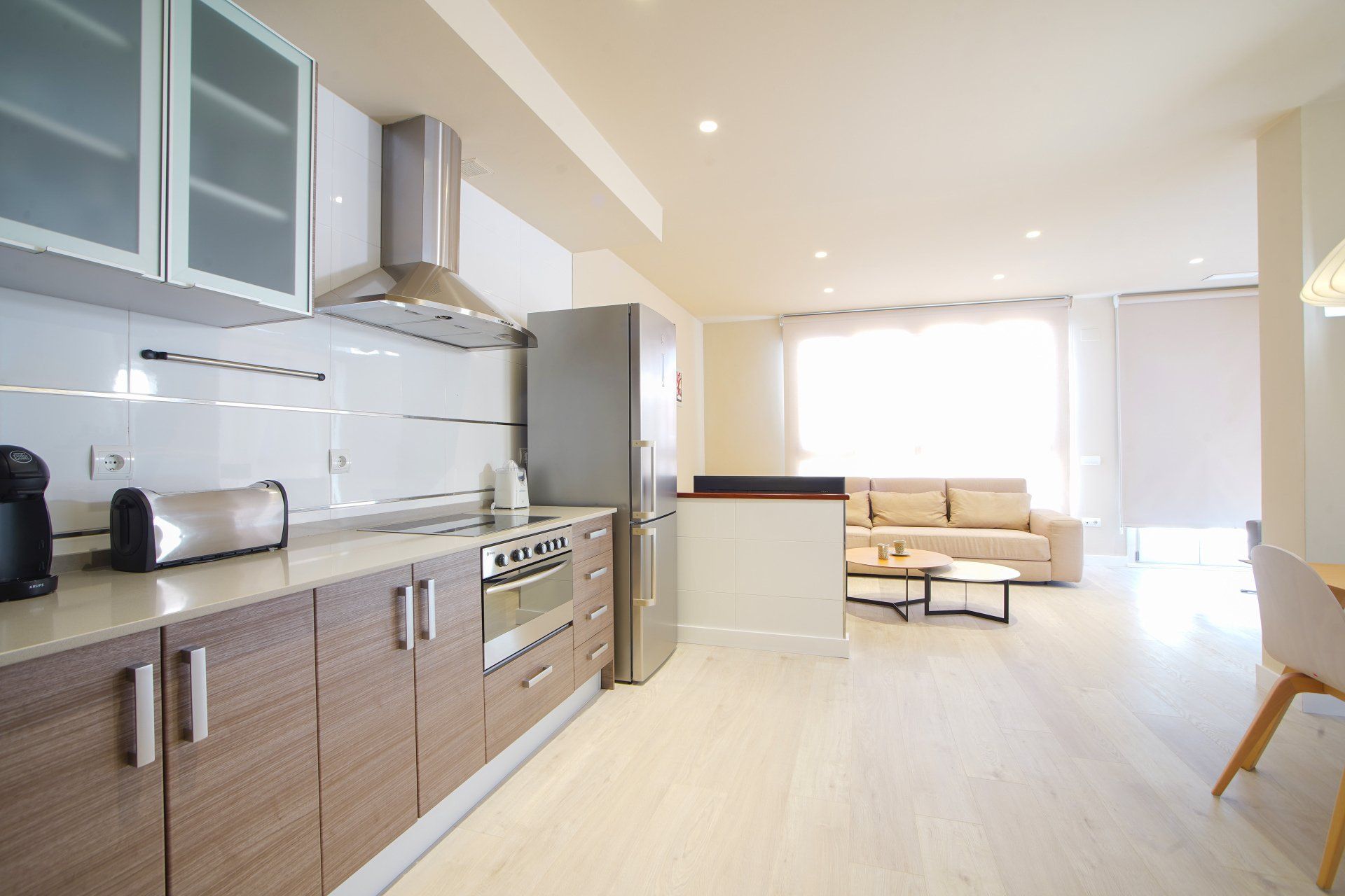 La cuisine est entièrement équipée. Ces appartements sont intérieurs, mais bénéficient de la lumière naturelle provenant des patios. Ce sont des préfets très calmes pour se reposer.